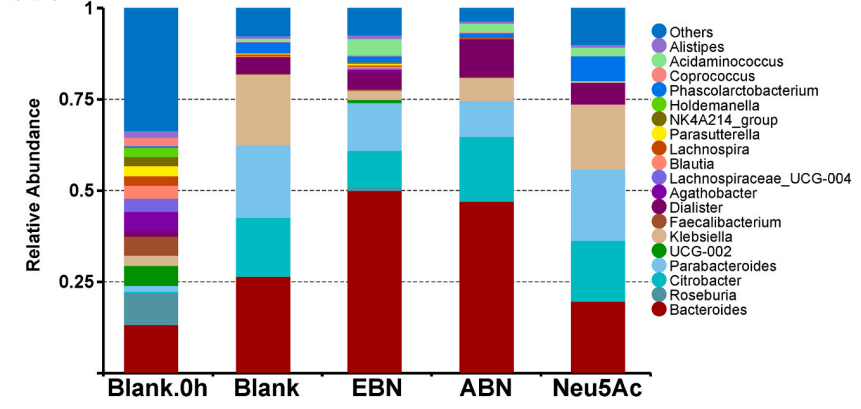 燕窝被很多人当做日常不可或缺的滋补品。基于此,该项目特别探究了燕之屋鲜炖燕窝对肠道微生物的影响,发现鲜炖燕窝能有效降低克雷伯氏菌(Klebsiella,有害菌)丰度,提高拟杆菌(Bacteroides,益生菌)丰度,以此发挥改善肠道菌群紊乱的作用。本研究发现了鲜炖燕窝可以调节肠道微生物群的平衡,促进肠道健康。