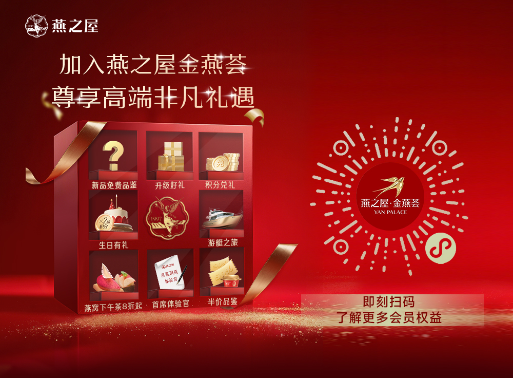 燕之屋企业,27年专注高品质燕窝,为您提供专属服务。 即刻扫码,加入燕之屋金燕荟,开启高端品质生活,为您定制更多专宠礼遇,享受专属的尊贵体验。