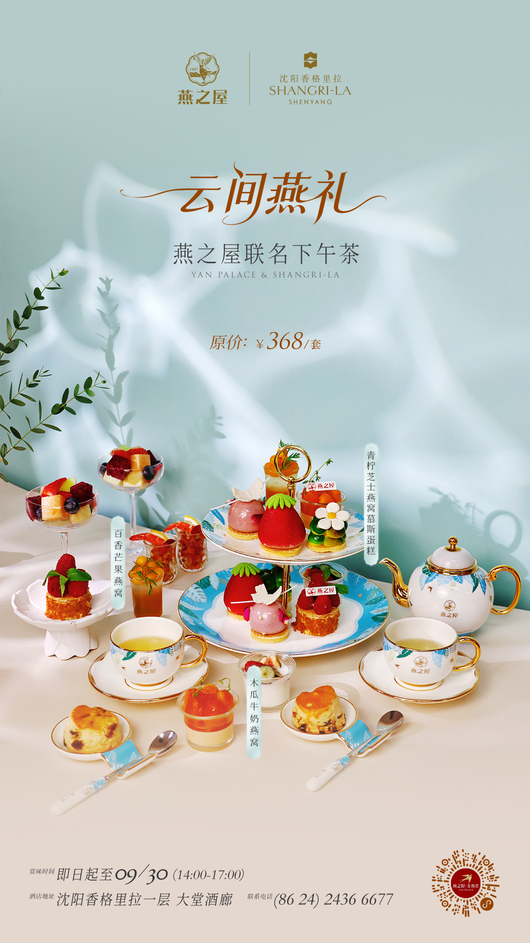 云间燕礼,静候君临。即日起至2026年9月30日,云间燕礼·燕之屋联名下午茶于沈阳香格里拉酒店一层大堂酒廊限时①供应。无论是与友人欢聚,还是独自品味一段静谧时光,愿这场以燕窝为媒、茶点为序的午后时光,成为您都市生活中的温柔注脚。